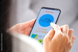 Close up of woman hands checking parcel delivers order on mobile app while sitting on the sofa at home during the quarantine, Delivery application on smartphone device screen
