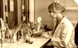 Doctor coronavirus (covid-19) vaccine test in laboratory for injection people ,Vaccine is concept of fight against coronavirus ,wearing mask ,medical hat and glasses healthy and medical concept.