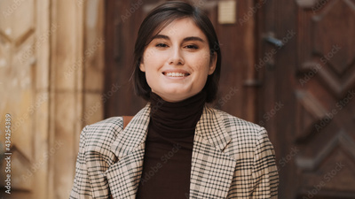 Portrait of beautiful businesswoman wearing turtleneck sweater l