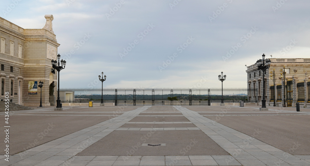 Plaza de la Armeria of the Royal Palace of Madrid, Spain, in the morning