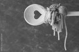 Spaghetti on spoon with heart, dark background, love italian food concept