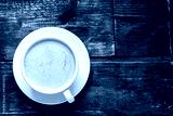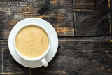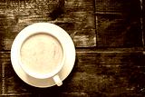 Coffee cup and coffee beans. Copy space. Espresso or Americano in a cup. Wooden background.