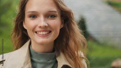 Portrait of beautiful student girl looking happy smiling on came