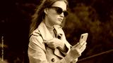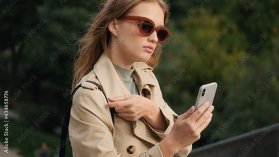 Beautiful student girl dressed in trench coat wearing sunglasses
