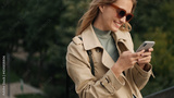 Pretty student girl wearing sunglasses and trench coat looking h