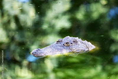 Big african alligator crocodile in the green water closeup