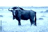 Large african antelope Gnu walking in yellow dry grass