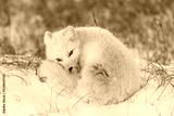 Wild arctic fox in tundra. Arctic fox lying. Sleeping in tundra.