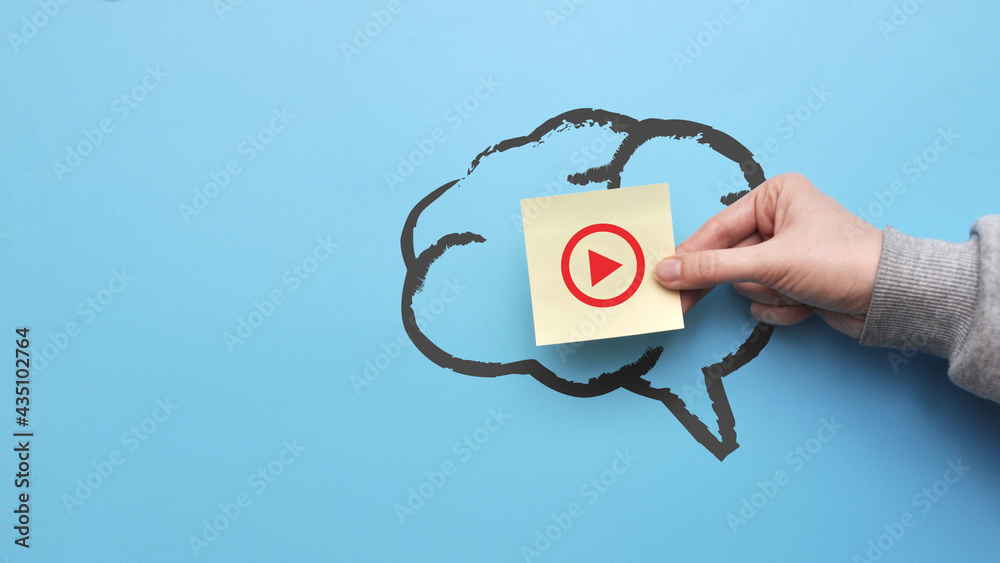 The silhouette of the brain and the "enable" icon on the sticker. A symbol for putting the brain to work