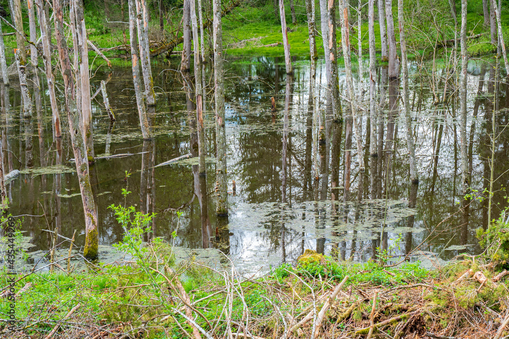 protected biotope with old trees standing in water