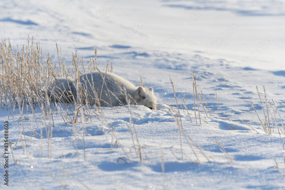 Wild arctic fox (Vulpes Lagopus) in tundra in winter time.