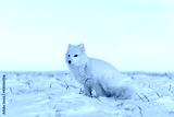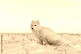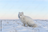 Arctic fox (Vulpes Lagopus) in wilde tundra. White arctic fox sitting.