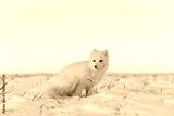 Arctic fox (Vulpes Lagopus) in wilde tundra. White arctic fox sitting.