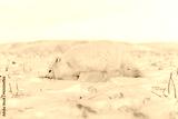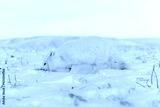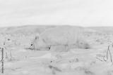 Arctic fox (Vulpes Lagopus) in winter time in Siberian tundra with industrial background.