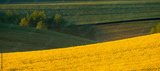 Panorama of the fields situated on undulating hills, reminiscent of the landscape of Italian Tuscany