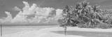 Beach vacation paradise woman tourist walking alone on remote island in the tuamotu islands, French Polynesia. Luxury travel destination. Panoramic banner.
