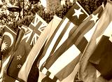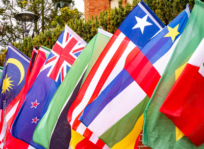Different countries, lots of national flags, mix, group of flag symbols, detail, closeup, nobody Unity, multiculturalism, cultures, peace, nations of the world, global economy simple abstract concept
