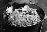 Healthy dinner. Lunch bowl with buckwheat porridge, fried chicken cutlets and fresh vegetable salad of arugula, cucumber and radish.