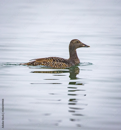 Eider duck, Somateria mollissima, single female, swimming in Artic.
