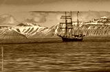 Old fashioned tall ship in harbor near Spitsbergen, Norway