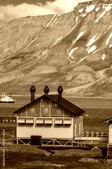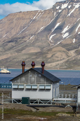 Typical house with metal chimneys in Longyearbyen, Svaldbard, Spitzbergen