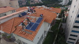 Trabajo, trabajadores, panel solar , sol, energia, sol, energia sostentable sustentable medidas de seguridad