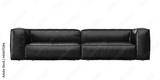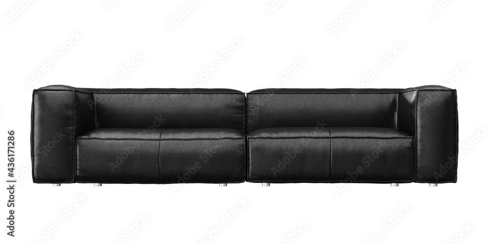 2 seat black color leather sofa with stainless steel legs on white background. front view. isolate background.