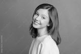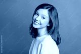 Profile side photo of young attractive school girl happy positive smile lovely isolated over purple color background