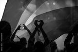 Gay parade with LGBT flag.