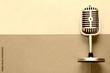 Retro microphone on color background