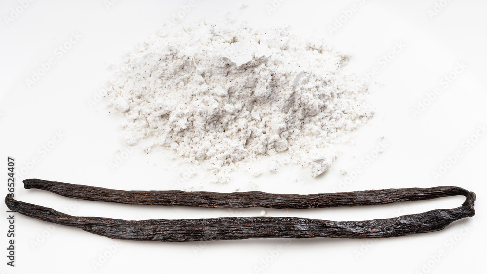 whole vanilla beans and pile of vanilla sugar