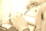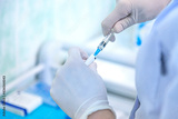 Concept fight against virus covid-19. Scientist or doctor in laboratory holding a syringe with liquid vaccine