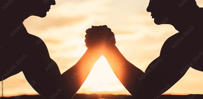 Men measuring forces, arms. Two men arm wrestling. Rivalry, vs, challenge, strength comparison.