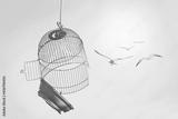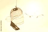 Birds escape out birdcage
