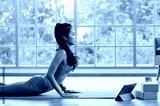 Exercise at home, Asian girl body stretch for workout fitness, Healthy asia woman exercising in home living room, Female people do yoga for relaxing , wellness, well being concept
