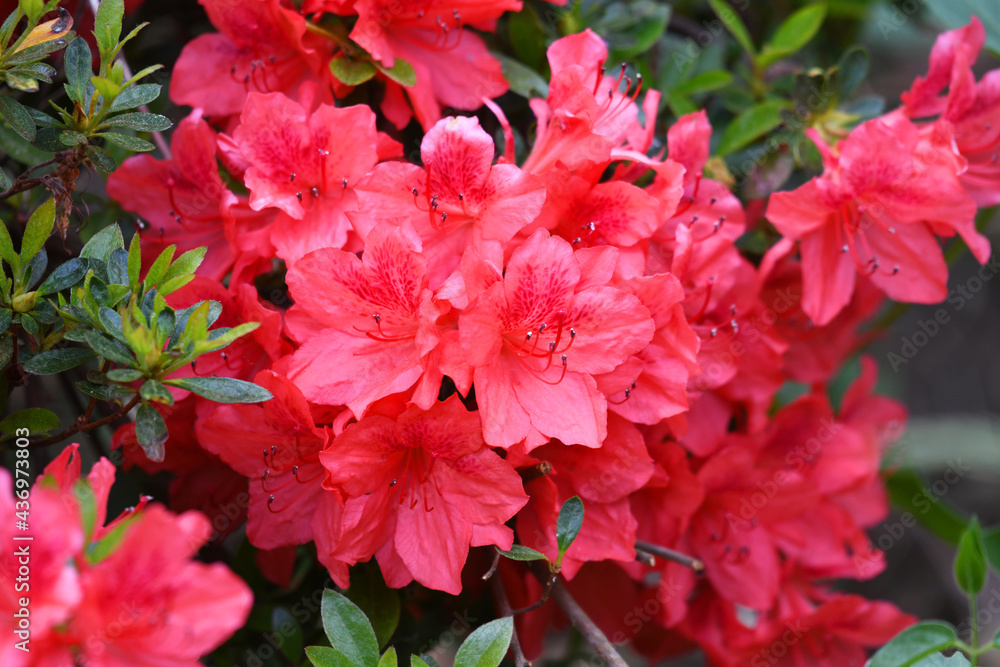 close up on blooming red rhododendron in spring