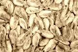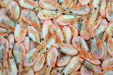 close up on frozen cooked prawns as food background