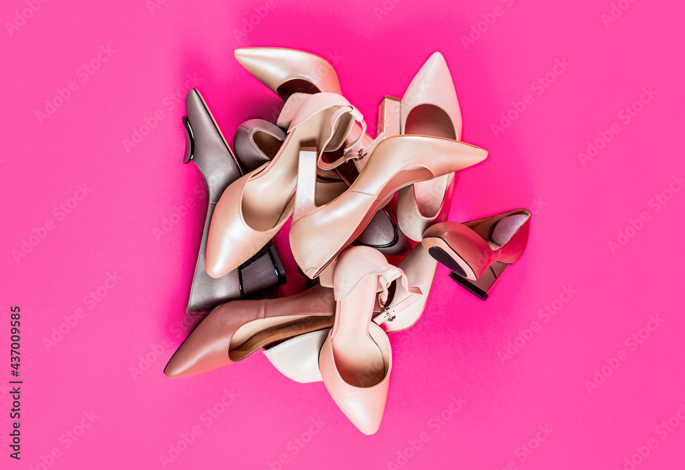 Fashionable women shoes isolated on pink background. View from above. Shoe for women