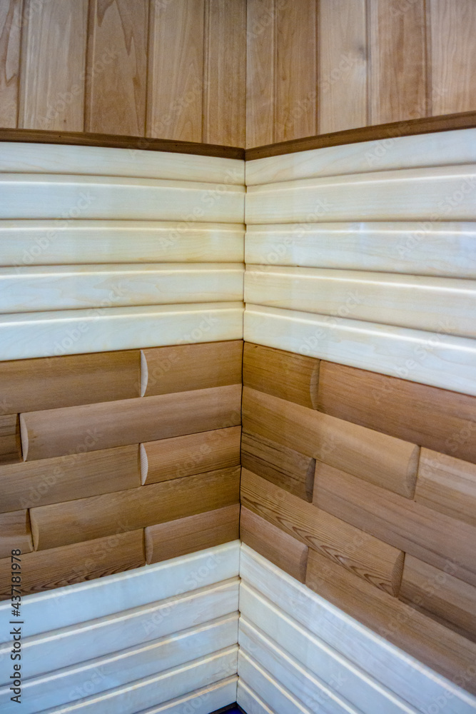 An example of wooden decoration for baths and saunas