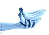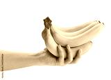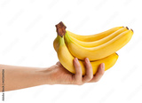 banana bunch in hand path isolated on white