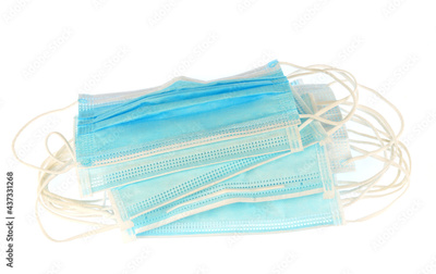 close up on surgical mask in package isolated on white background