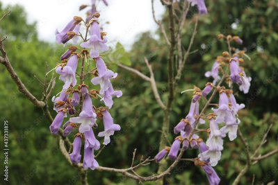 Paulownia tomentosa in bloom on springtime with beautiful purple flowers on branches