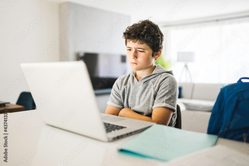 bored and sad teen student after hard work with computer