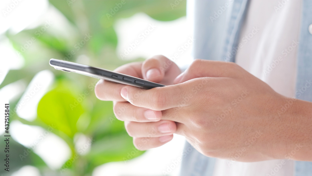 Close up of man hand holding mobile phone , People on smart phone, technology lifestyle