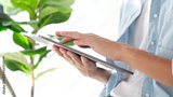 Close up of man hand using digital tablet for working at home, online study, telecommunication