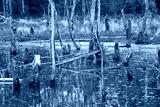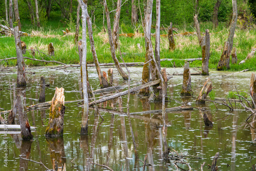 Biotop im Naturschutzgebiet mit Totholz im Wasser