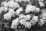 White flowers on green bushs closeup