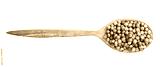 top view of wood spoon with coriander seeds