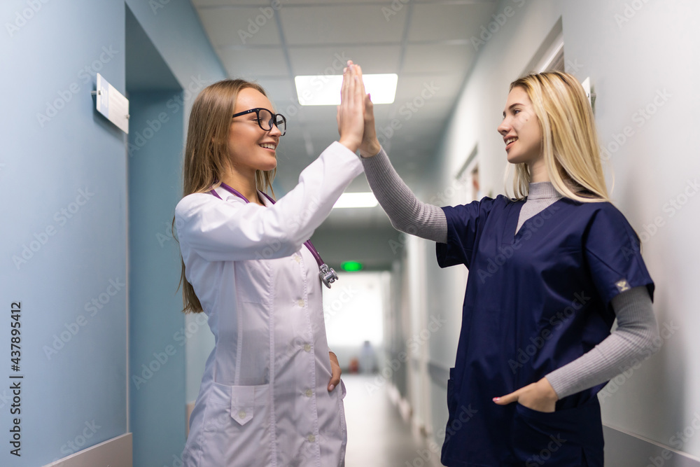 Doctors Team of Surgery gives High Five motivation in a clinic