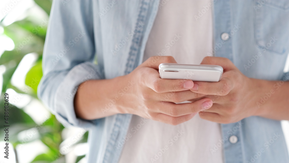 Close up of man hand holding mobile phone , People on smart phone, technology lifestyle